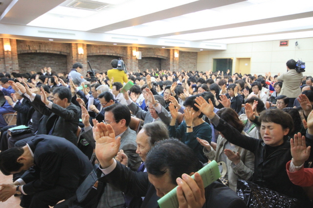 이후 특별기도 순서로 ‘실종자들의 무사귀환을 위해’ 이병순 목사(한기총 공동회장), ‘구조된 분들의 심신의 안정을 위해’ 강기원 목사(한기총 공동회장), ‘안산 단원고 학생과 교사, 부모님들을 위해’ 조창희 목사(한기총 부회장), ‘비극적 참사의 재발방지를 위해’ 정춘모 목사(한기총 총무협의회장), ‘실종자 구조를 위해 힘쓰는 분들을 위해’ 고영자 권사(한기총 여성위원장)가 간절한 마음으로 기도하였다.