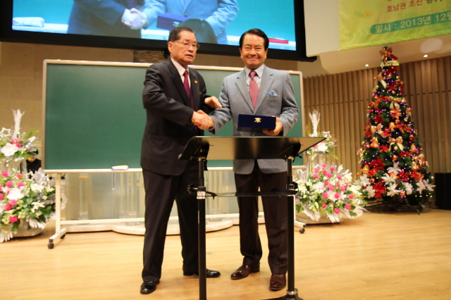 ▲위촉패를 전달 받는 정해송 신임 사장( 사진 좌측)