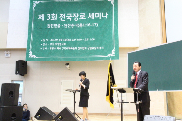 ▲세미나 주강사인 류공수 목사(세계복음화전도협회 이사장)